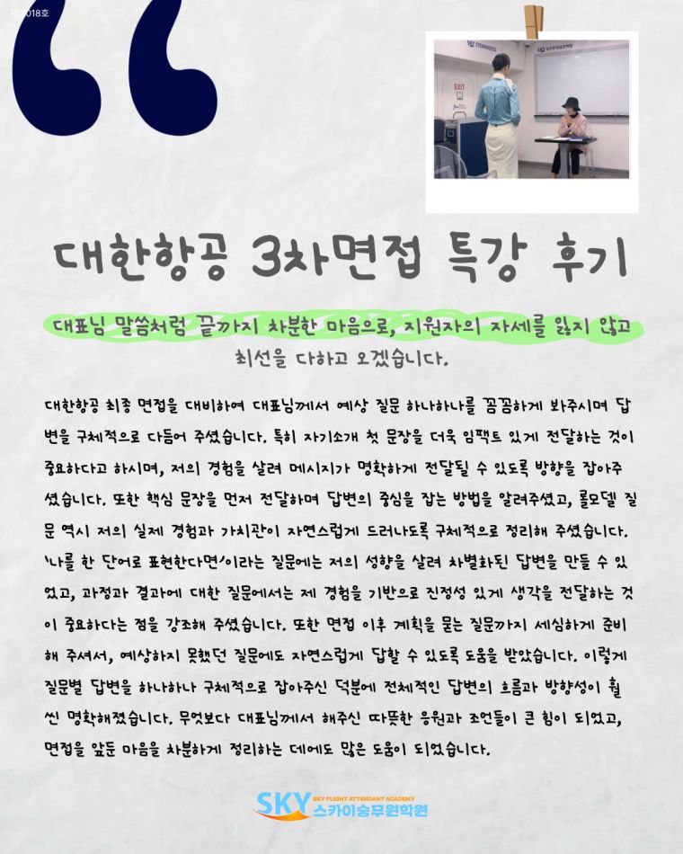 | Á¦¸ñ [´ëÇÑÇ×°ø] 3Â÷ ¸éÁ¢ Ư°Èıâ |