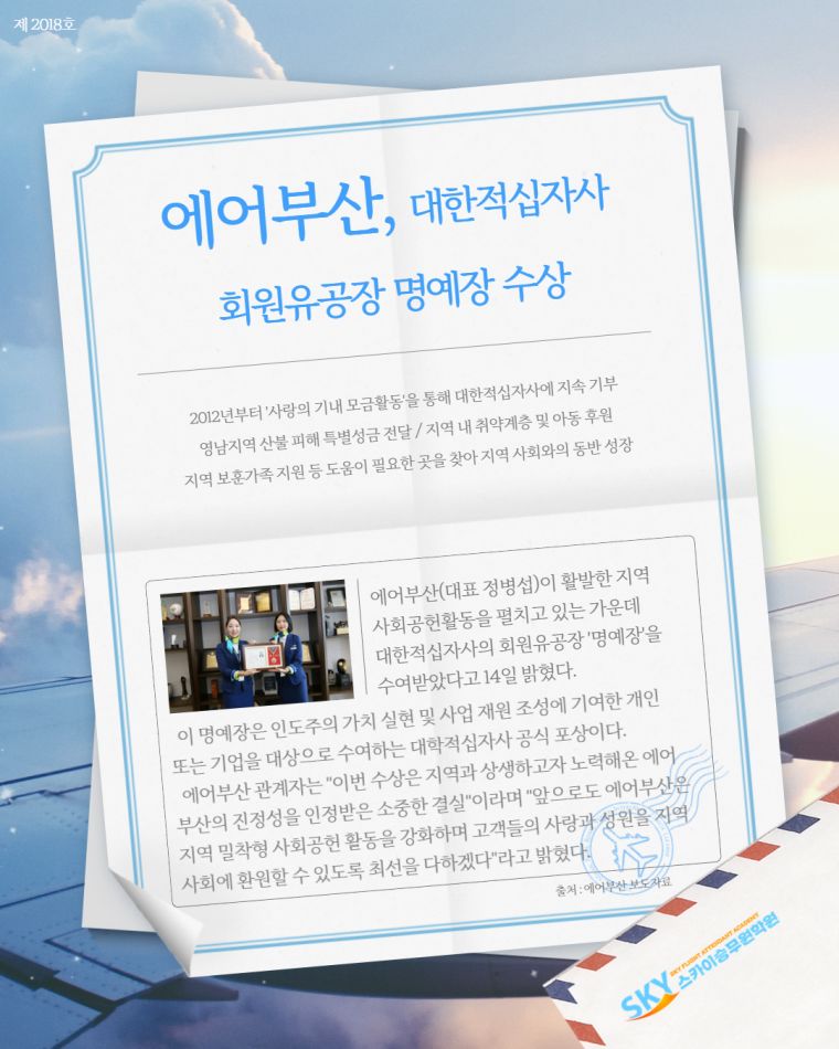| Á¦¸ñ [Ç×°ø´º½º] ¿¡¾îºÎ»ê, ´ëÇÑÀû½ÊÀÚ»ç ȸ¿øÀ¯°øÀå ¸í¿¹Àå ¼ö»ó |